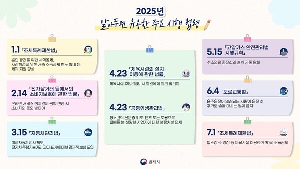 법제처는 27일 이 같은 내용을 포함해 내년부터 새로 시행되는 법령 중 알아두면 좋을 법령을 소개했다. 새로 시행되는 법령의 제정·개정 이유 및 주요 내용은 국가법령정보센터(www.law.go.kr)에서 확인할 수 있다.